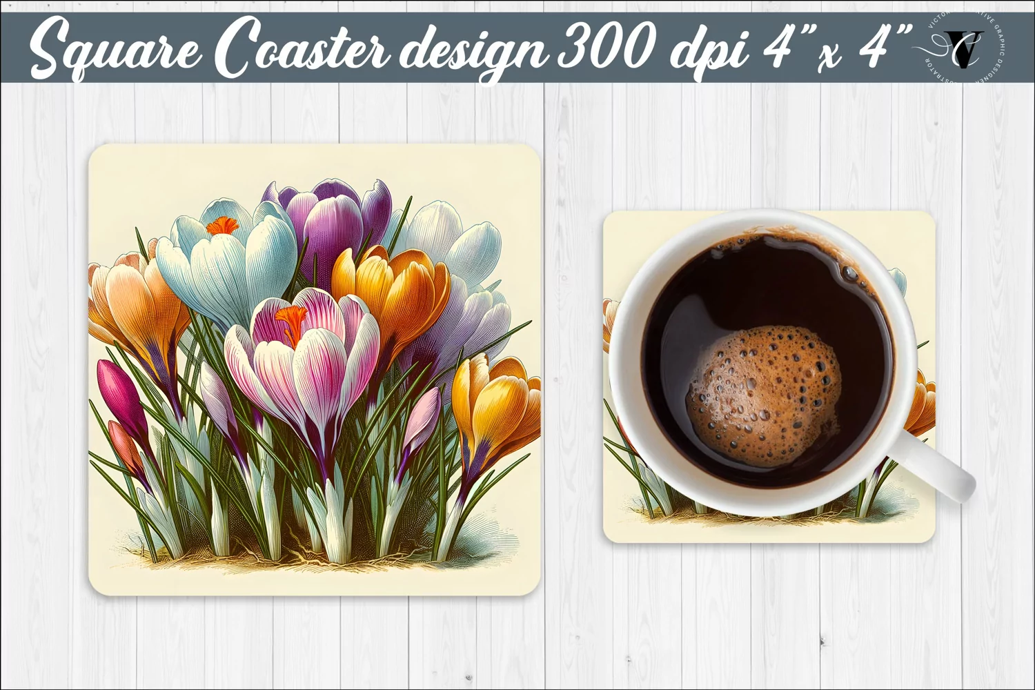 Square Coaster with Spring flowers, square coaster sublimation design, spring