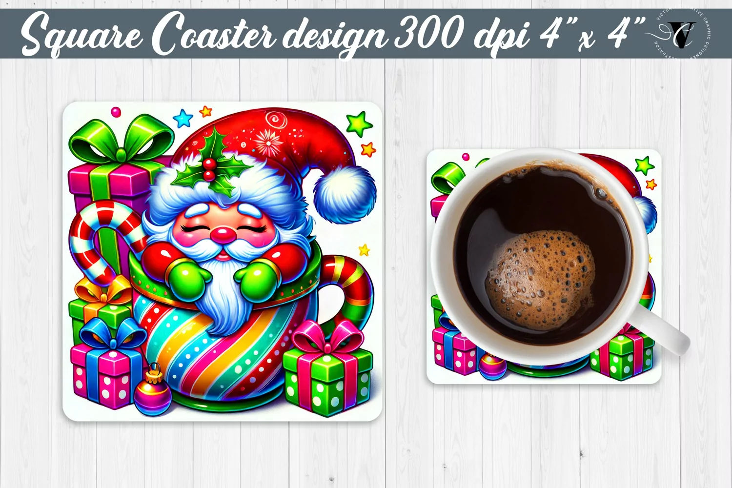 Square Coasters | Christmas Gnome in Mug | Rainbow Gnome example image 1