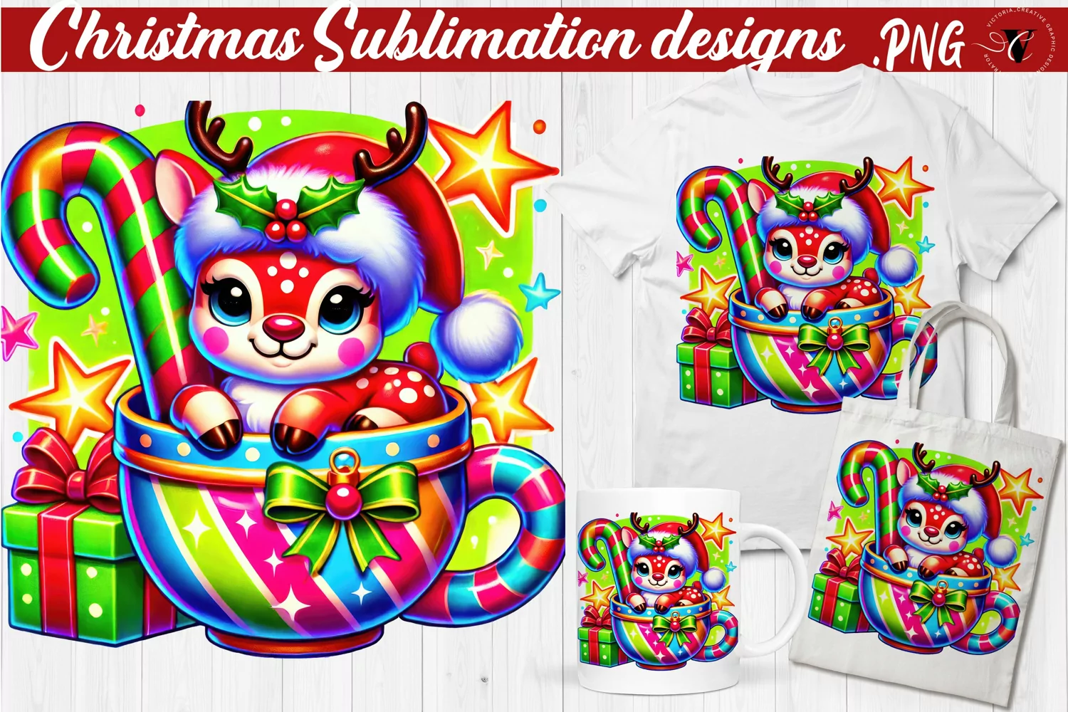 Christmas sublimation, Christmas clipart, Christmas Animals in Mug, Rainbow