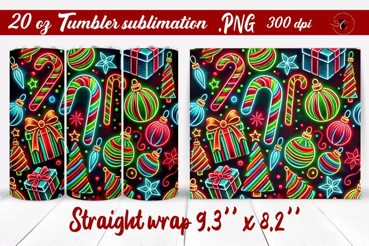 Christmas Pattern Snowflakes Christmas Pattern Sublimation Tumbler Neon Pattern Tumbler Wrap Tumbler Sublimation 20 Oz Tumbler