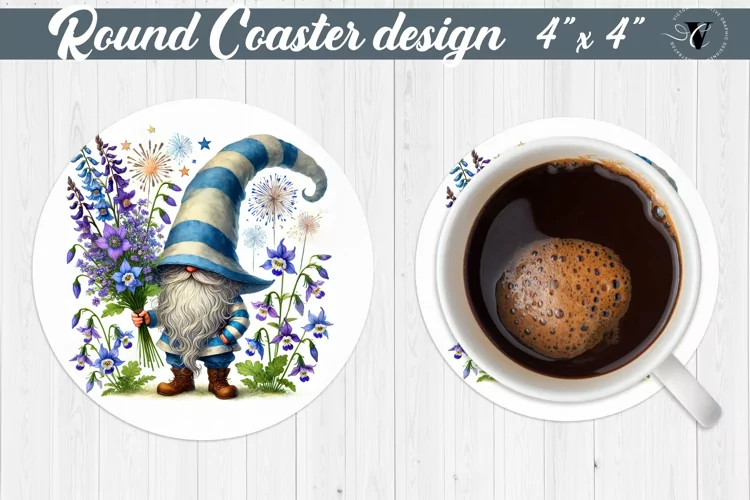 Round Coasters | Gnome with Flowers | Spring example image 1