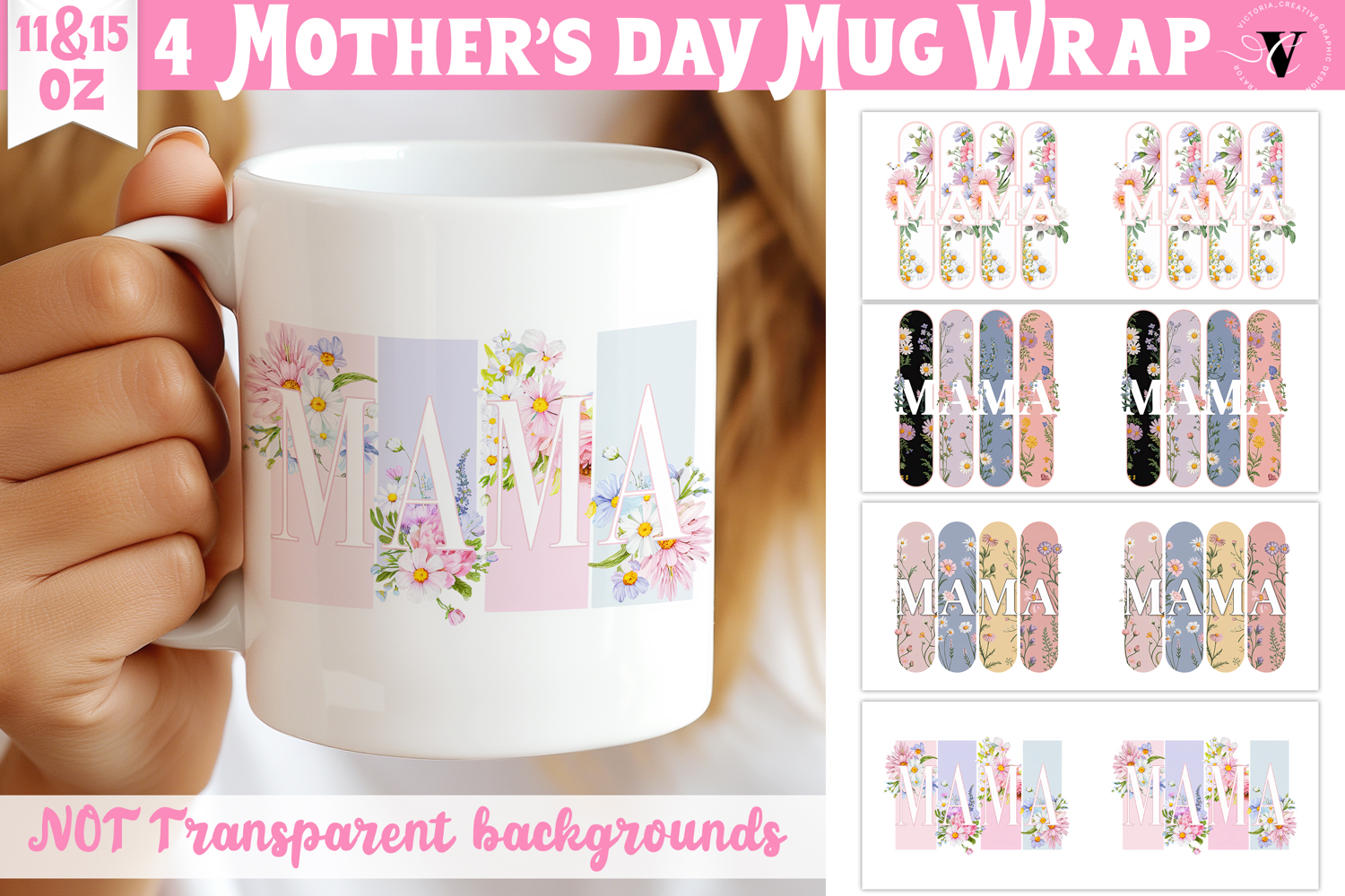 Mug wrap design with Flowers, Mothers day, mug sublimation, mug wrap, mug design, MAMA