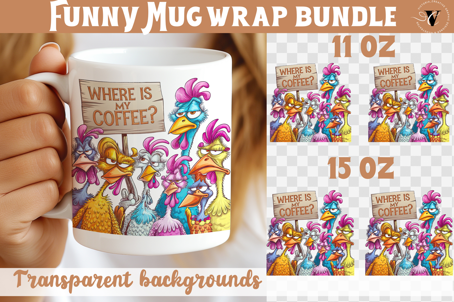 Mug wrap design with Funny Chicken, Where is my coffee? animals mug sublimation, mug wrap, mug design