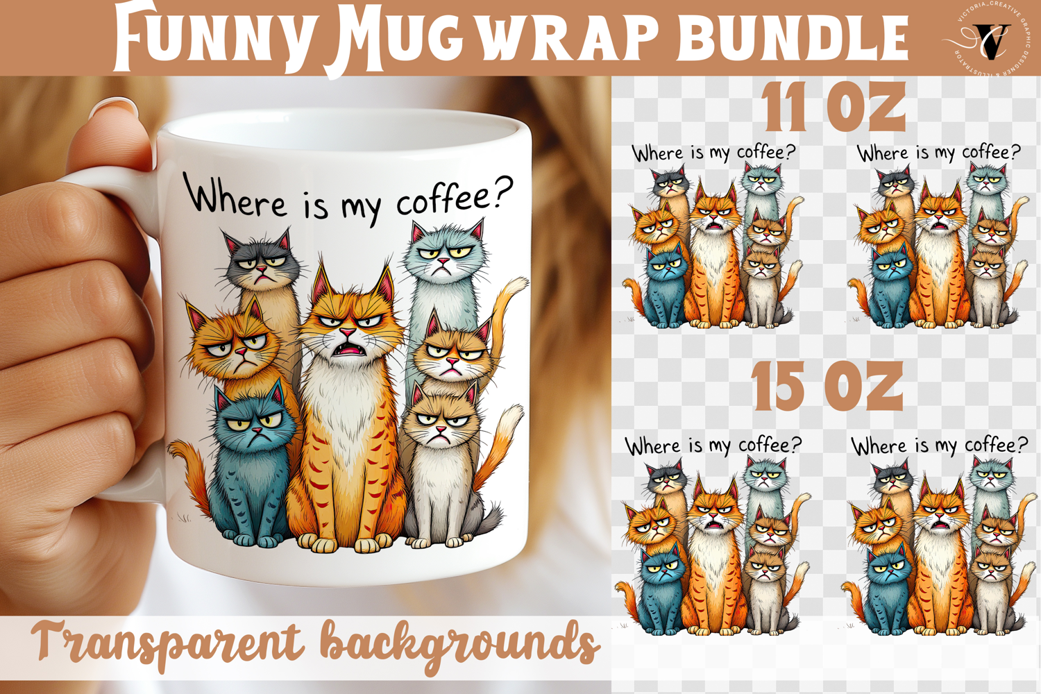 Mug wrap design with Funny Cats, Where is my coffee? animals mug sublimation, mug wrap, mug design