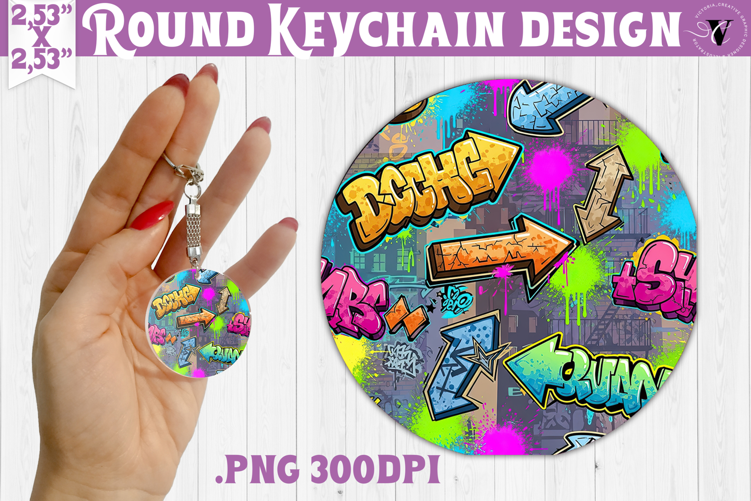 Round Keychain with 90s graffiti style, Vintage Vibe