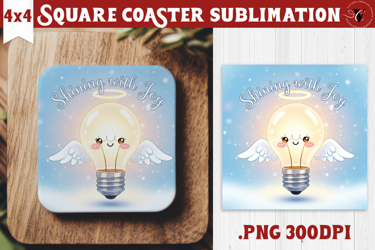 Cute square coaster with Christmas kawaii design, cute cartoon Christmas sublimation