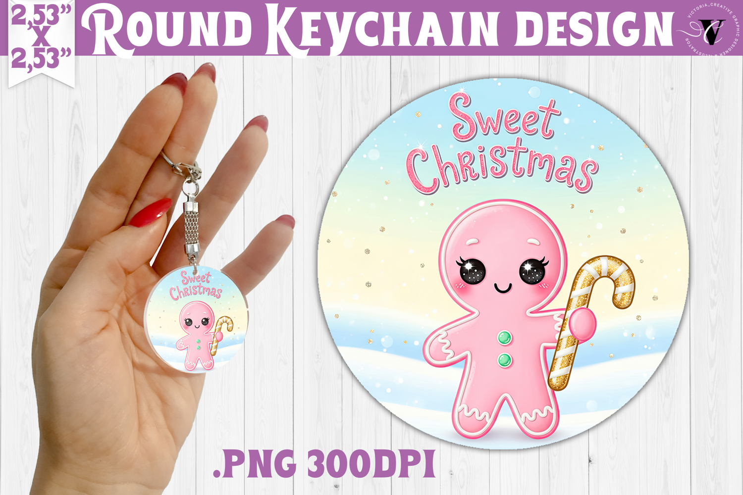Cute Round Keychain with Christmas kawaii design, cute cartoon Christmas sublimation