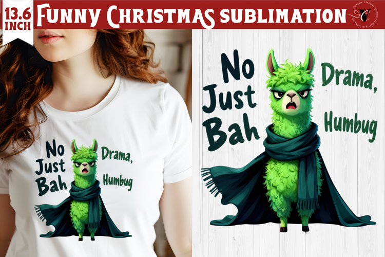 Funny Christmas animal sublimation | Grumpy green lama example image 1