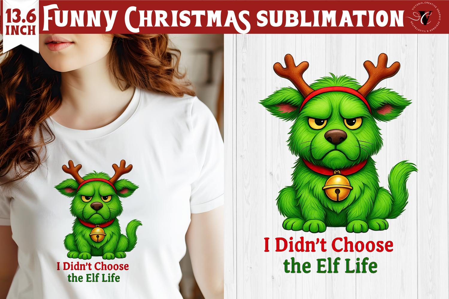 Funny Christmas animal sublimation | Grumpy green dog