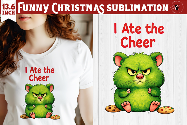 Funny Christmas animal sublimation | Grumpy green hamster example image 1