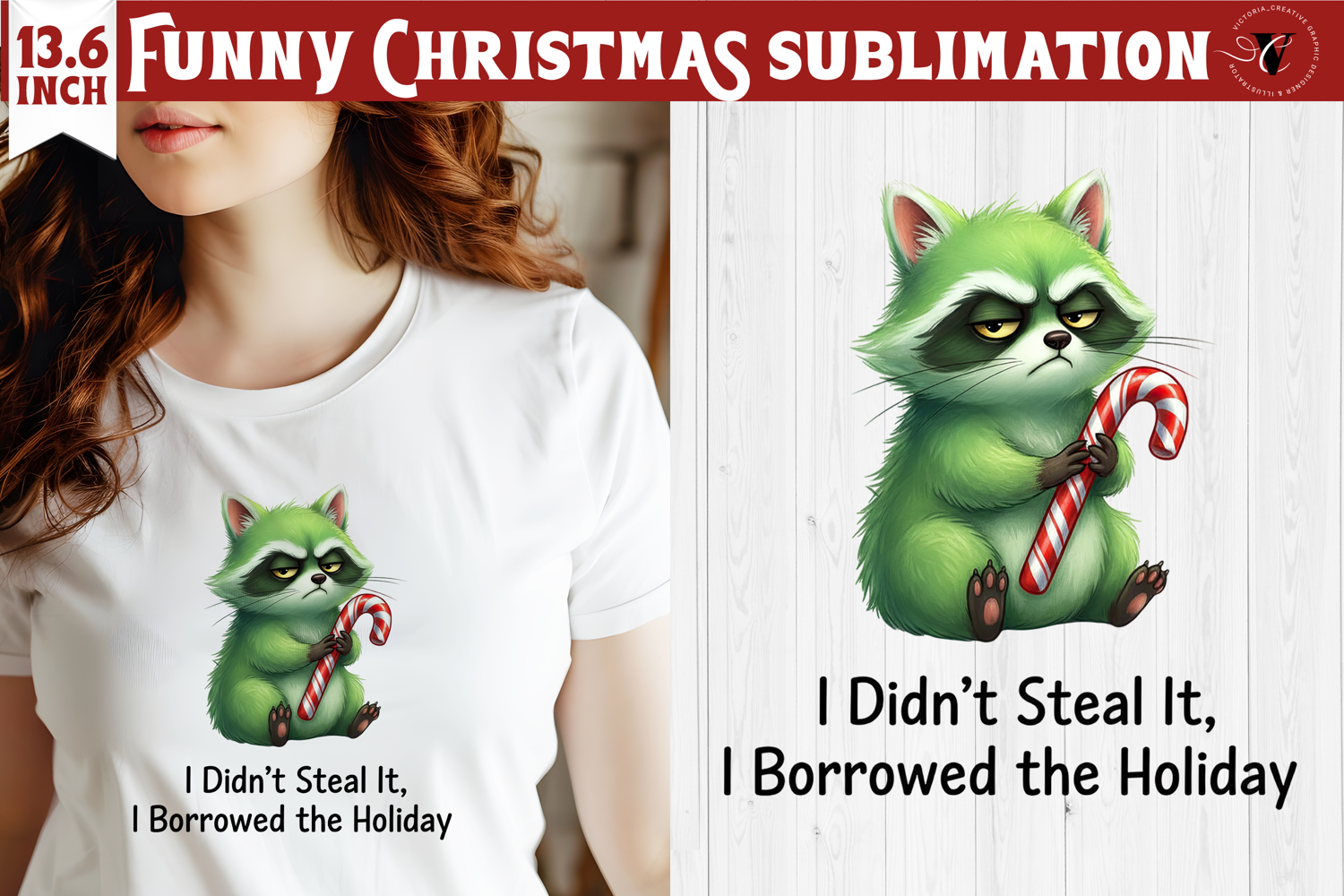 Funny Christmas animal sublimation | Grumpy green raccoon