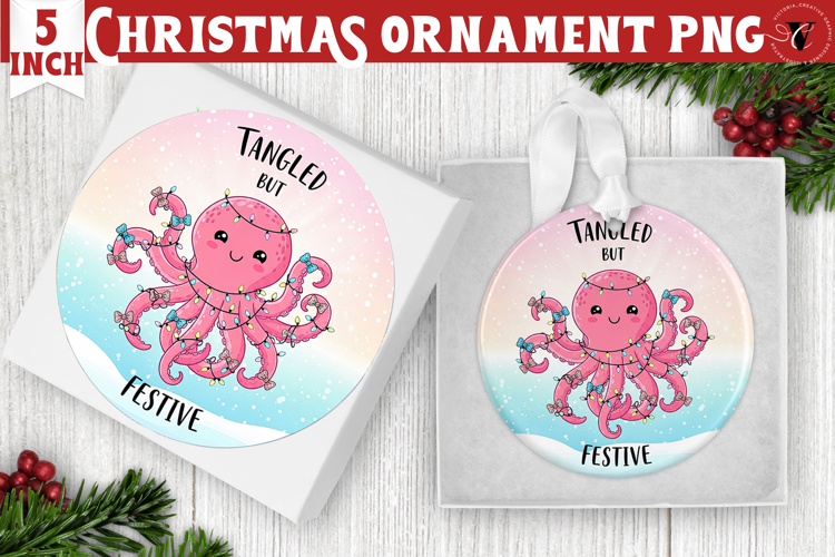 Cute Christmas ornament with Christmas kawaii design, cute cartoon Christmas sublimation