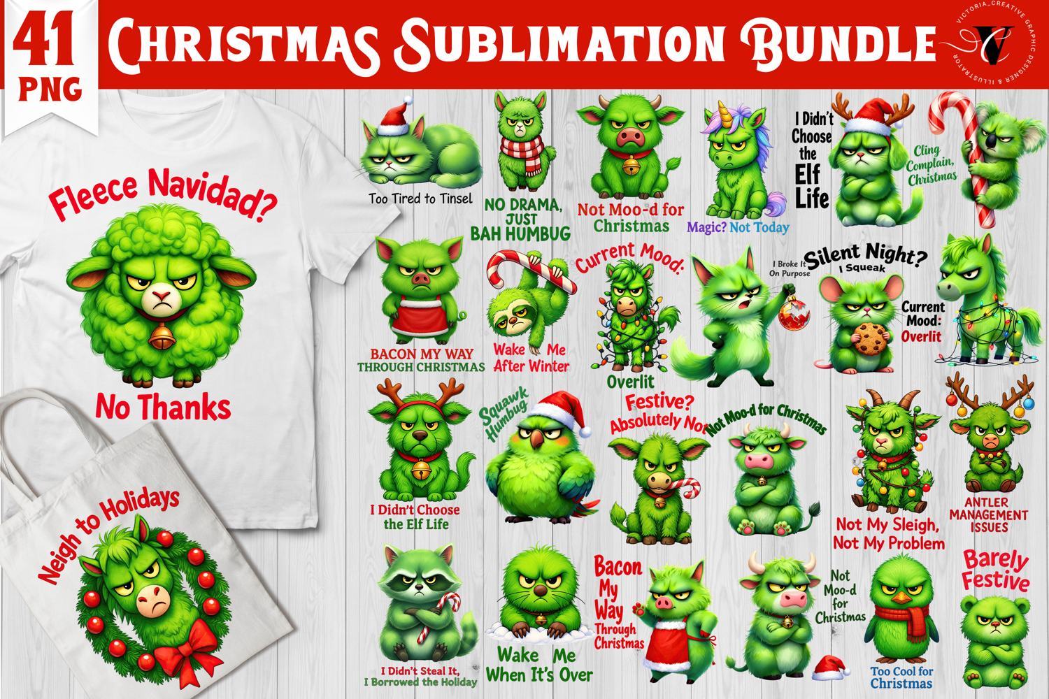 Funny Christmas animal sublimation | Grumpy green animals