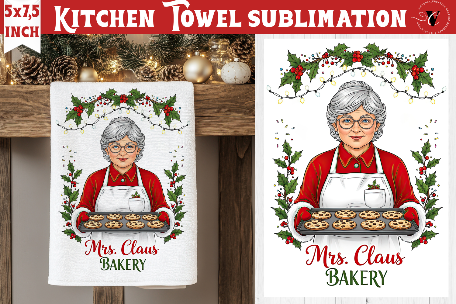 Christmas kitchen towel sublimation | Holiday baking print