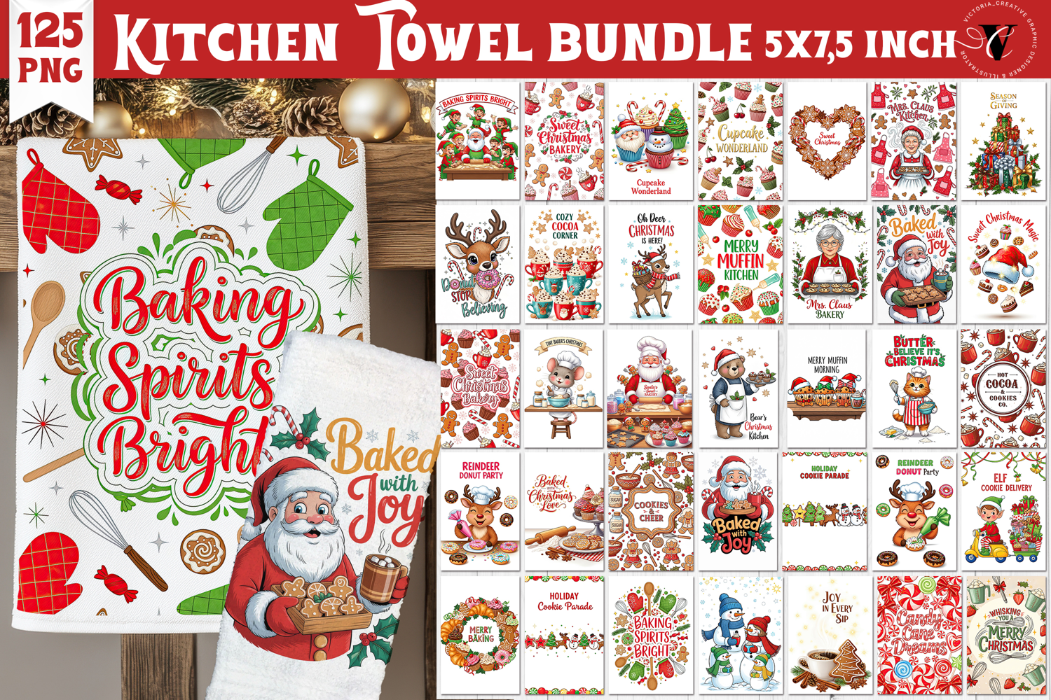 Bring warmth and holiday cheer to your kitchen with this adorable Christmas Kitchen Towel Sublimation Design ! Each illustration captures the cozy spirit of Christmas baking — from sweet treats and cocoa mugs to festive elves and reindeer — making it perfect for towels, aprons, mugs, pot holders, and more.