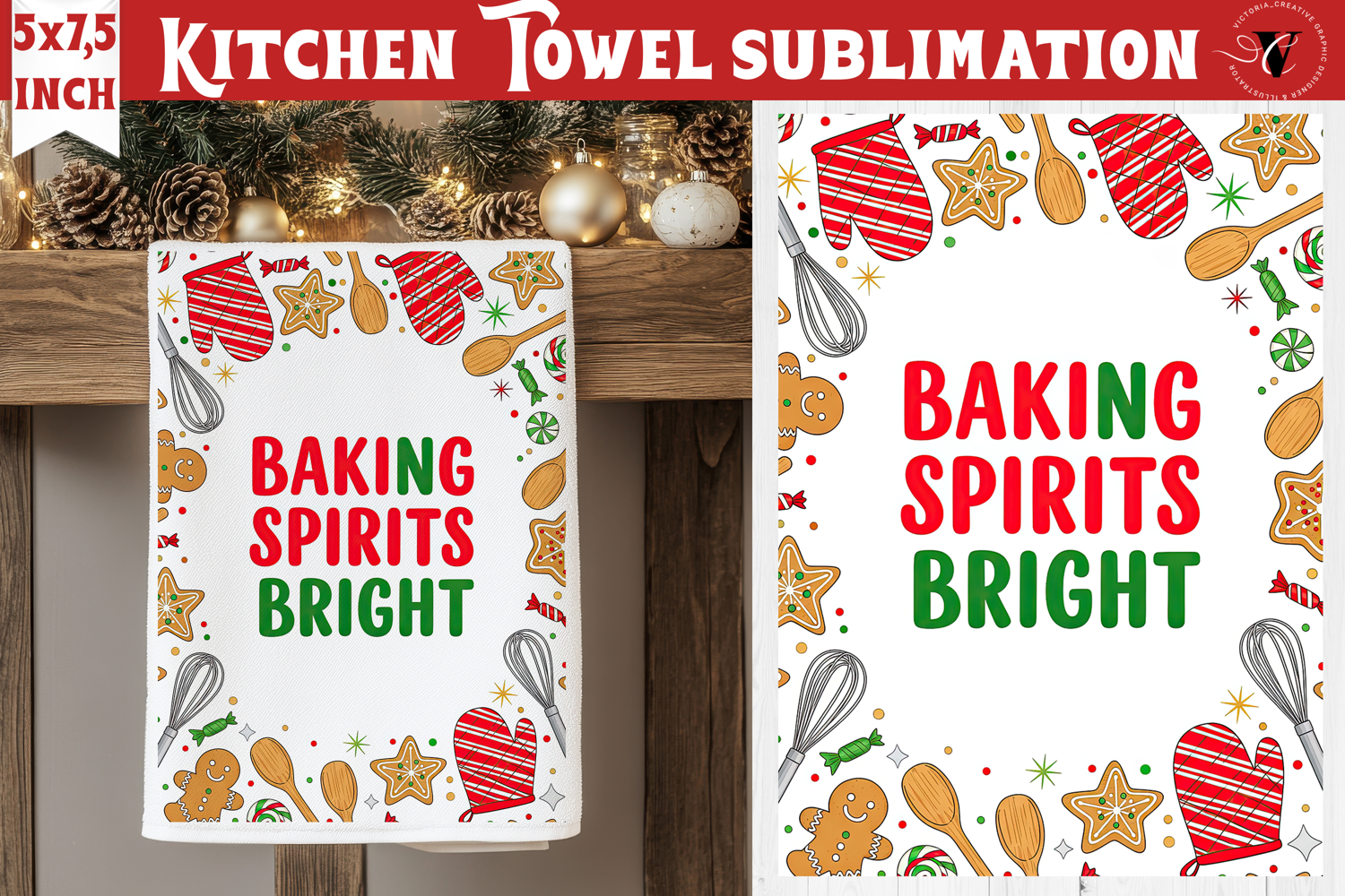 Christmas kitchen towel sublimation | Holiday baking print