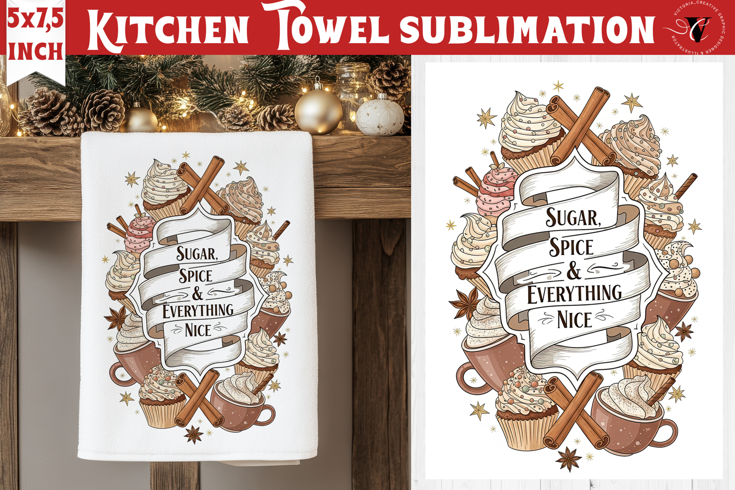 Christmas kitchen towel sublimation | Holiday baking print