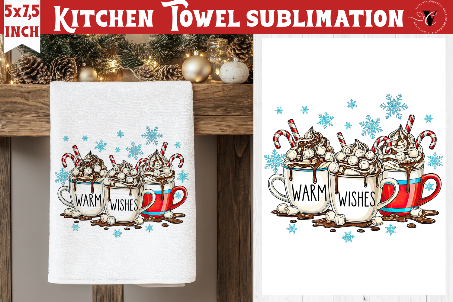 Warm Wishes Kitchen Tea Towel Kitchen Decoration Kitchen Sublimation Dish Towel Sublimation Christmas Kitchen Decoraion Christmas Kitchen Towel Sublimation Design Holiday Baking Kitchen Decor Festive Cocoa Cupcake Elf Cookie Santa Mouse Deer Funny Christmas Gingerbread Cocoa Quotes Pattern