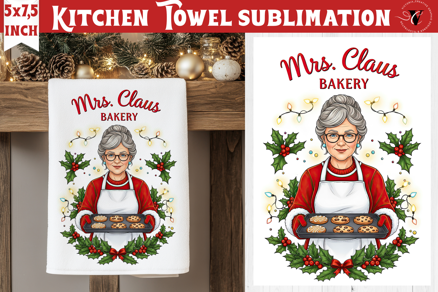 Christmas kitchen towel sublimation | Holiday baking print