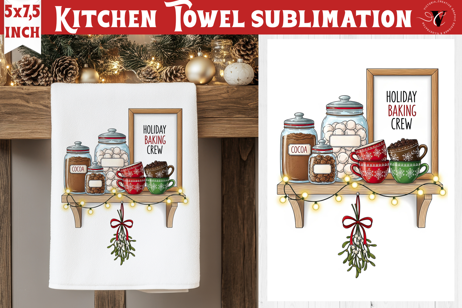 Christmas kitchen towel sublimation | Holiday baking print