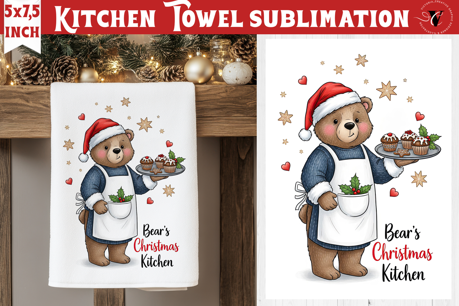 Christmas kitchen towel sublimation | Holiday baking print example image 1