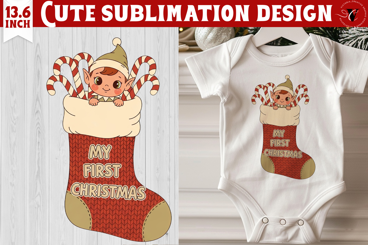 Celebrate the magic of your little one’s very first Christmas with this adorable My First Christmas Sublimation Design!