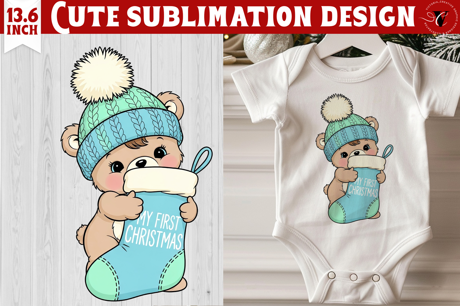 Celebrate the magic of your little one’s very first Christmas with this adorable My First Christmas Sublimation Design!