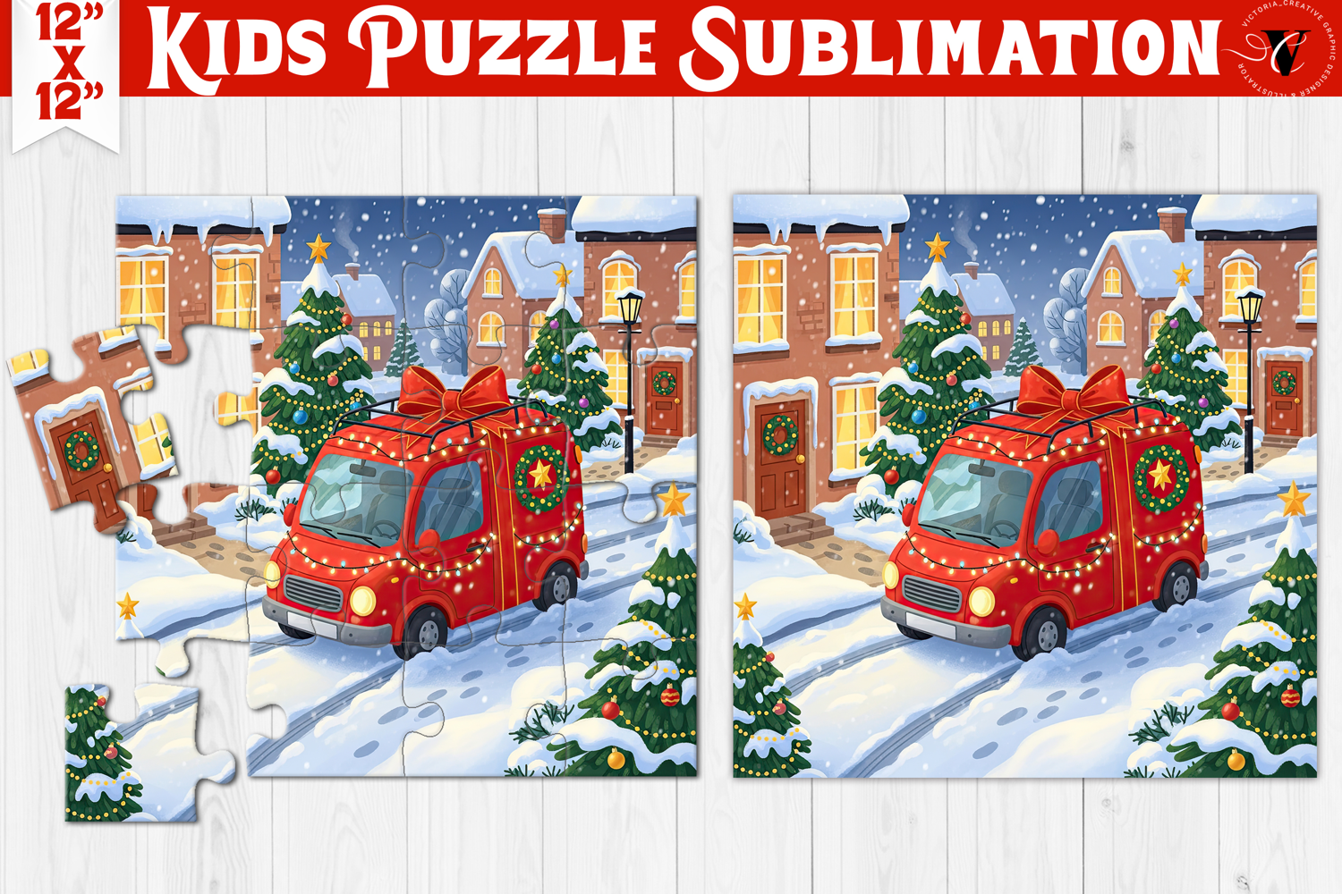 Kids puzzle, Sublimation puzzle design, Christmas, Cute Christmas car