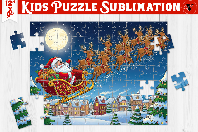 Kids puzzle, Sublimation puzzle design, Christmas, Cute Santa