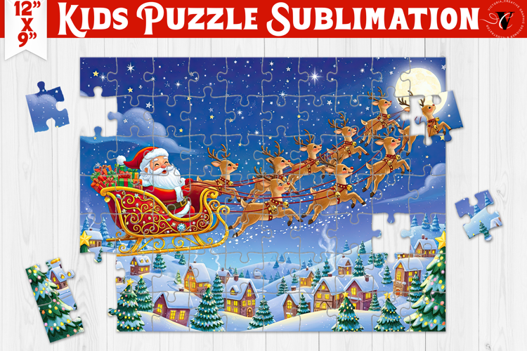 Kids puzzle, Sublimation puzzle design, Christmas, Cute Santa