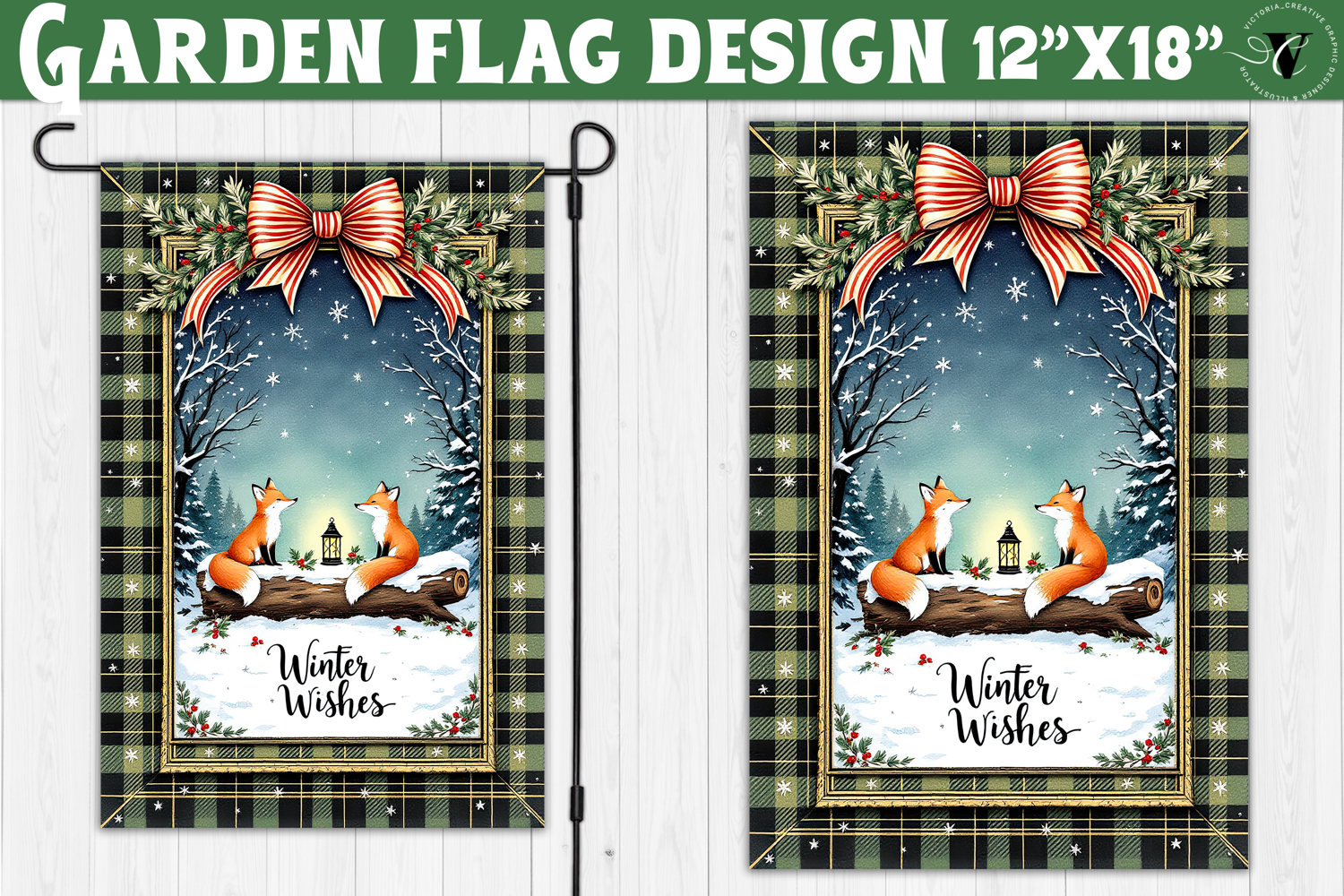 Merry Christmas Garden flag | Christmas Foxes sublimation