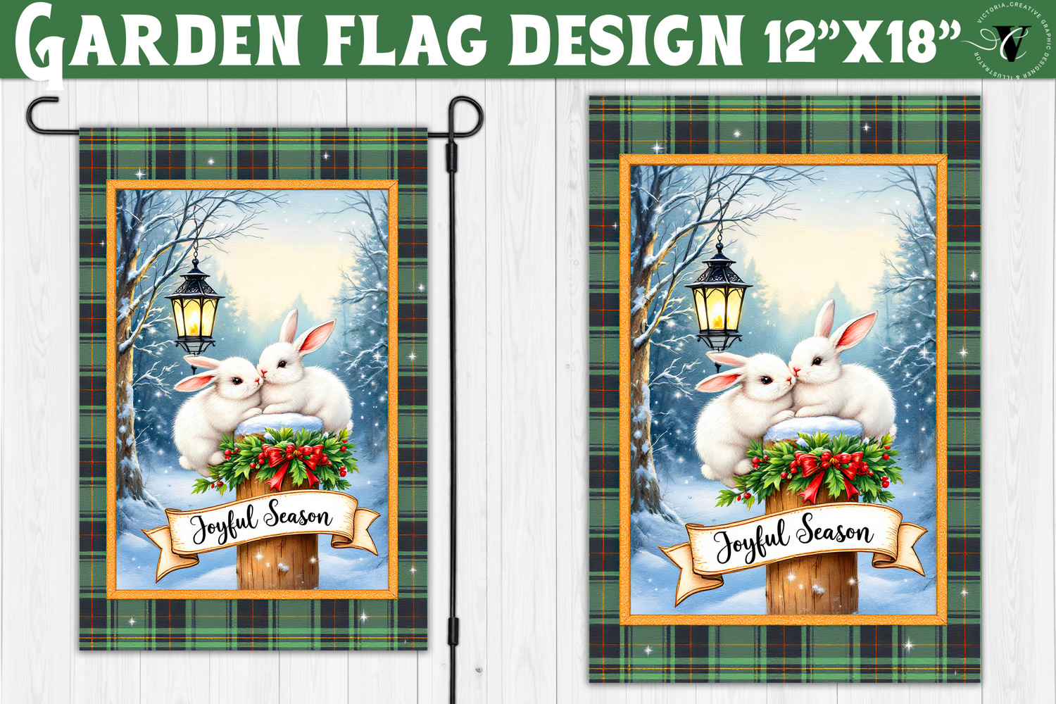 Merry Christmas Garden flag | Christmas Rabbits sublimation example image 1