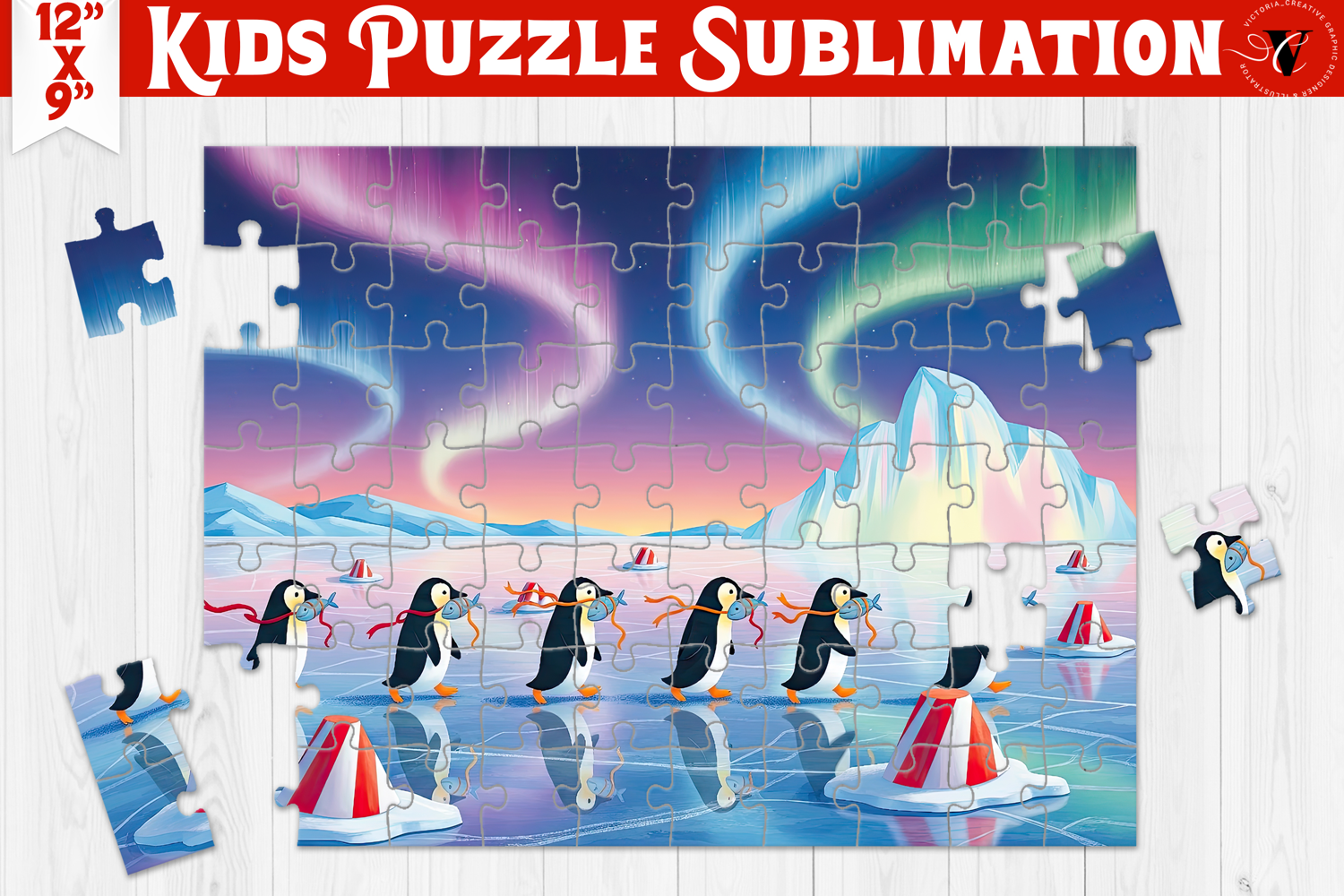Kids puzzle, Sublimation puzzle design, Christmas, Cute Penguins