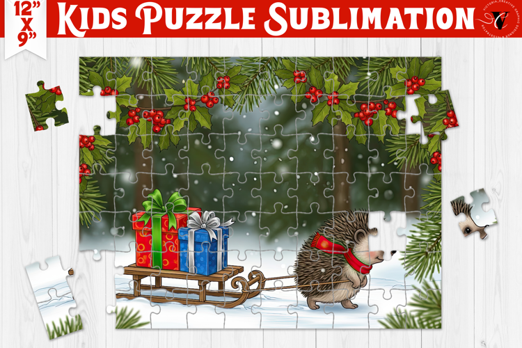 Kids puzzle, Sublimation puzzle design, Christmas, Cute Christmas Hedgehog