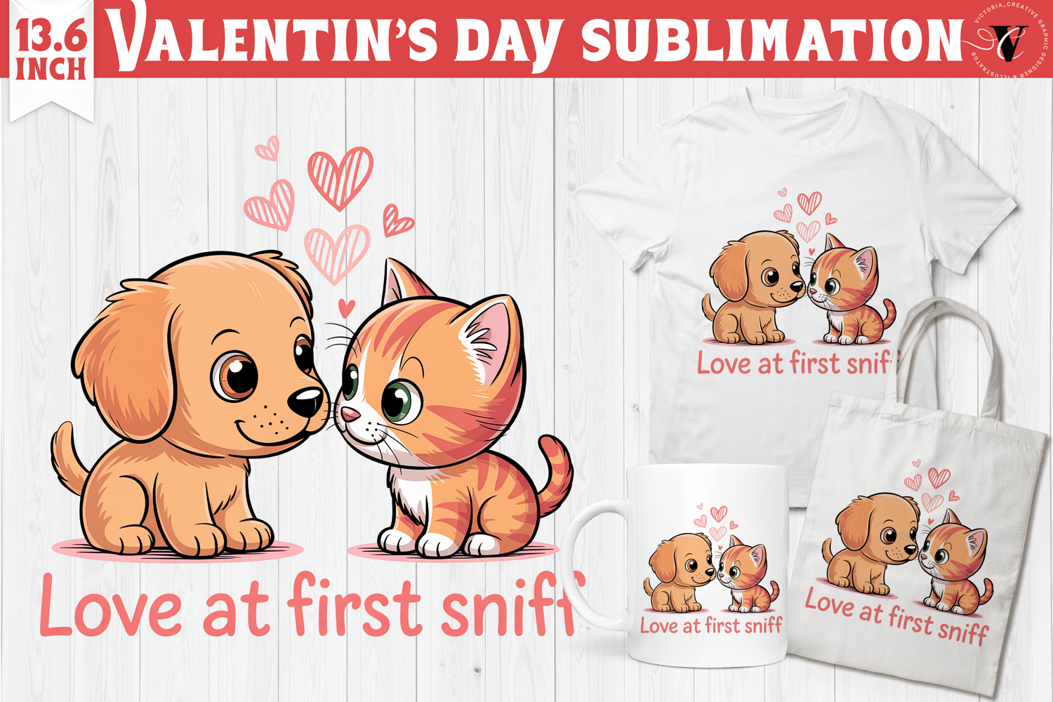 Valentines Day Happy Valentines Day Cute Animal Valentine Adorable Couple Sublimation Romantic Cartoon Png Cute Puppy And Kitten Valentines Day Cute Clipart Cute Cartoon Valentines Sublimation Valentin's Day Tshirt Mug Pillow Tote Bag Love At First Sniff