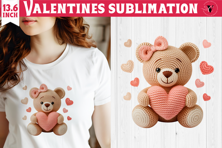Crochet Valentines Day sublimation | Knitted love bear example image 1