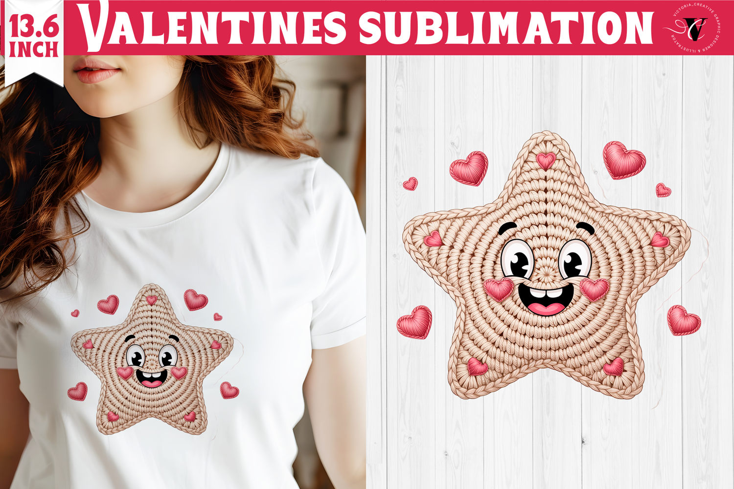 Crochet Valentine Day sublimation | Knitted star