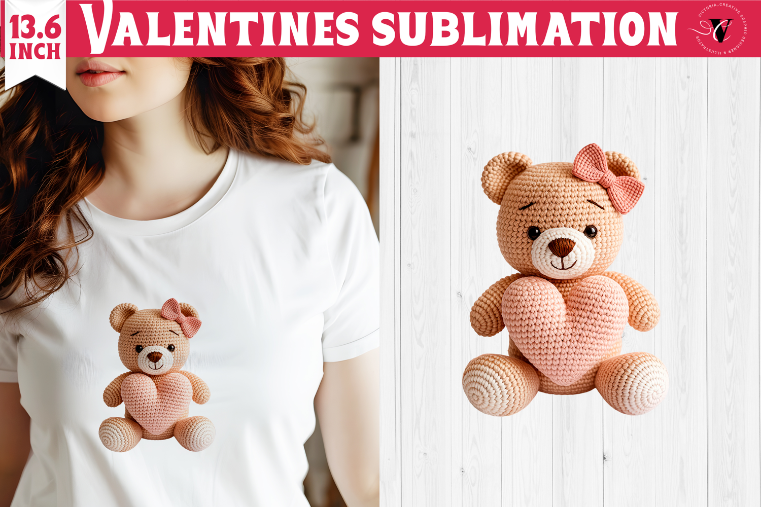 Crochet Valentines Day sublimation | Knitted love bear