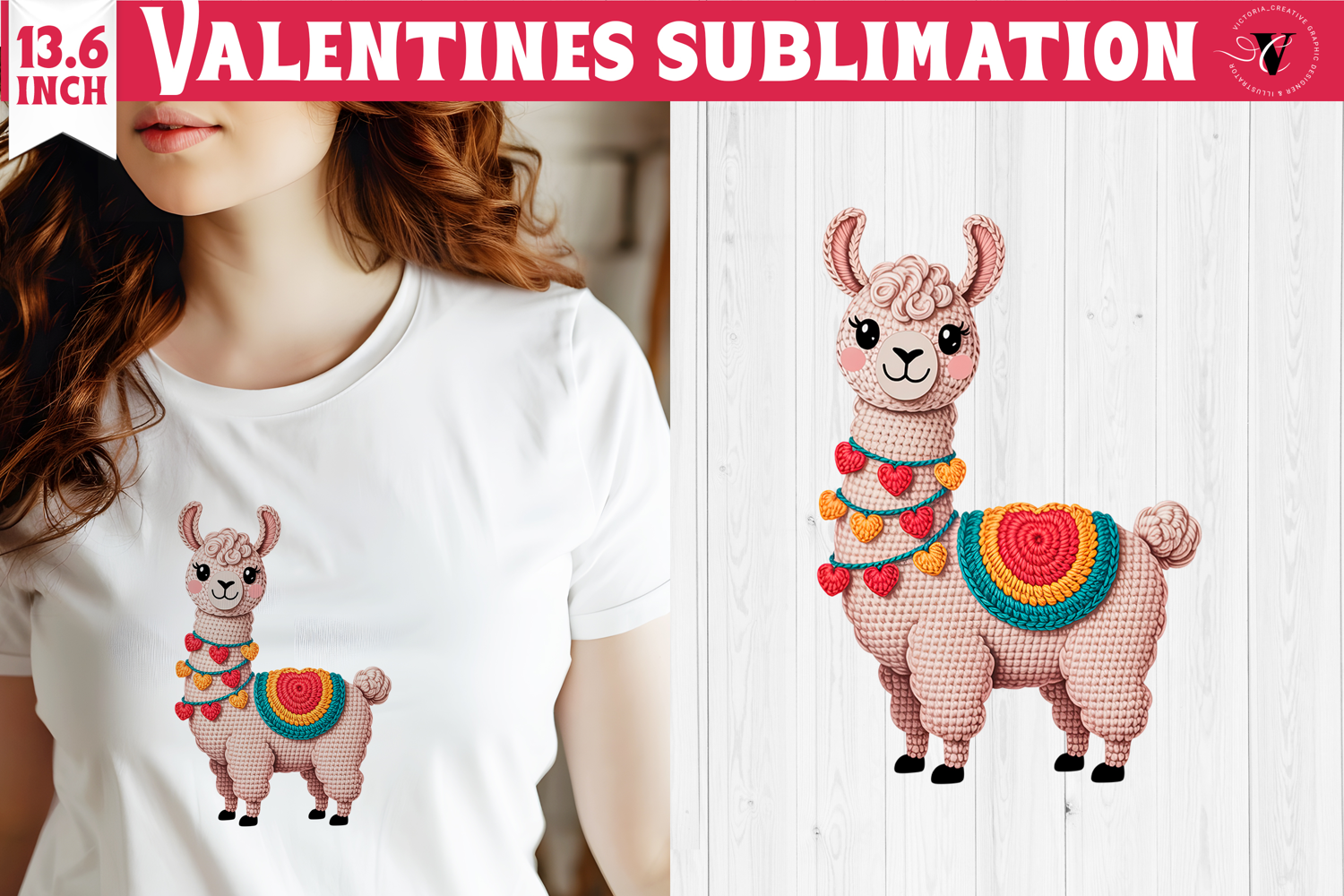 Crochet Valentines Day sublimation | Knitted lama