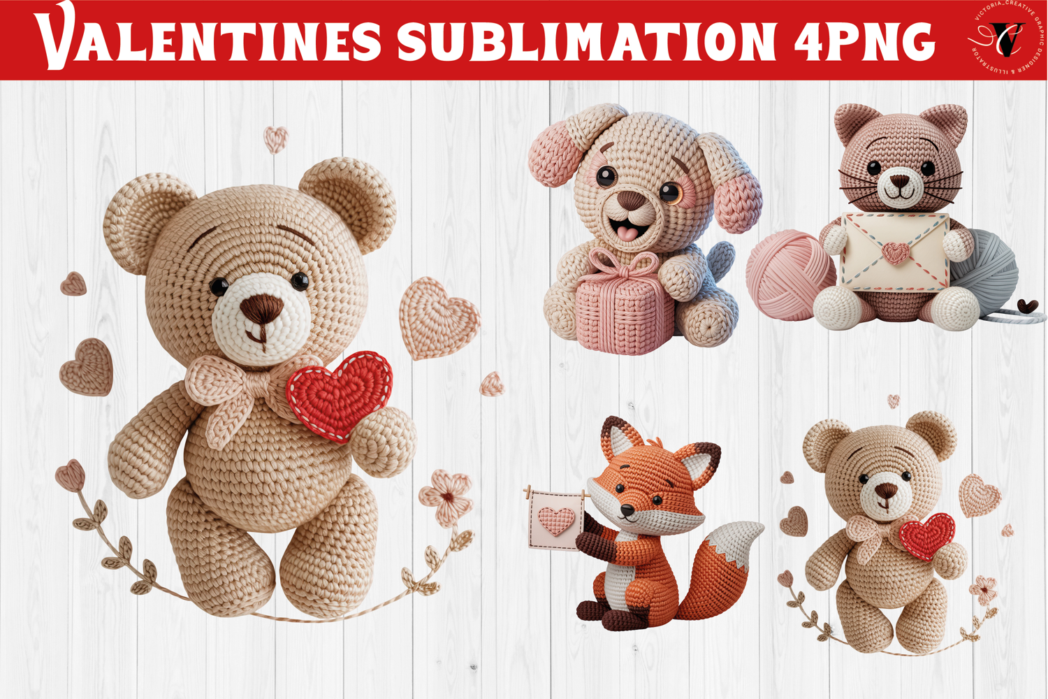 Crochet Valentines Day sublimation | Knitted love characters example image 1