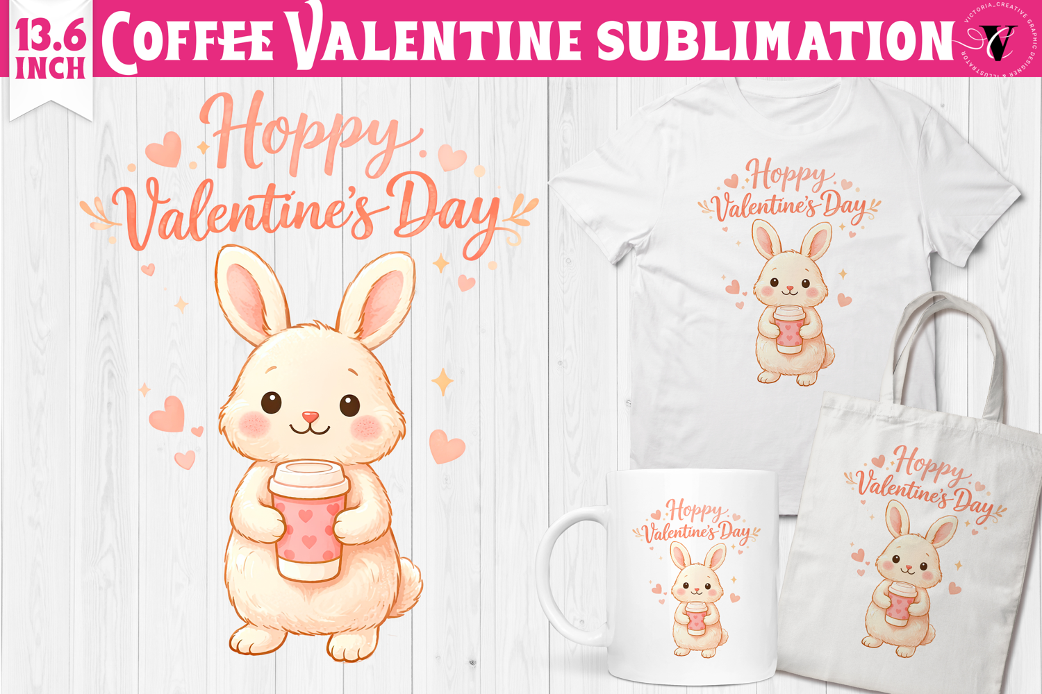 Valentines Day Cute Bunny Happy Valentines Day Coffee Adict Coffee Lover Sublimation Latte Sublimation Cute Animal Valentine Valentines Coffee Print Valentines Day Cute Clipart Valentin's Day Tshirt Mug Pillow Tote Bag