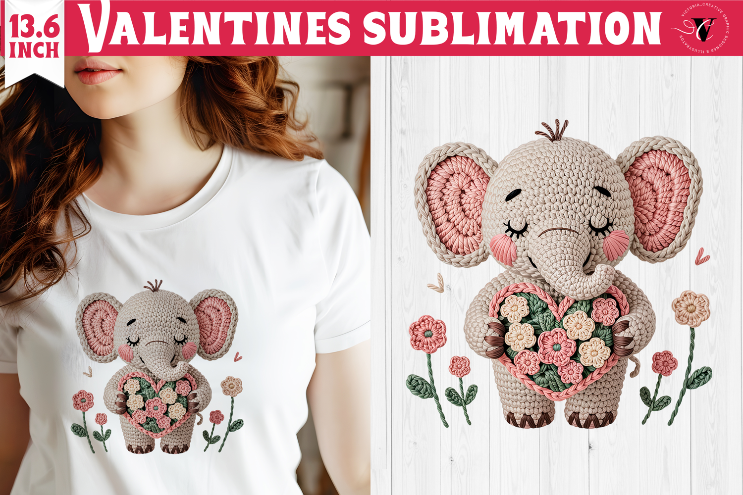 Crochet Valentines Day sublimation | Knitted Elephant example image 1