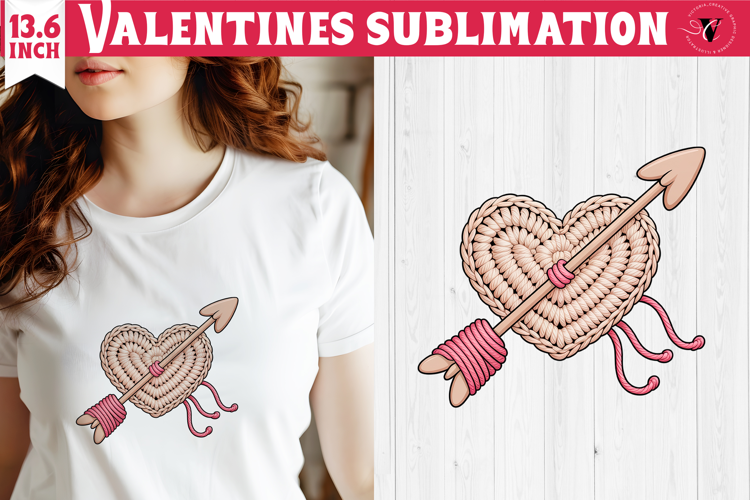 Crochet Valentines Day sublimation | Knitted heart and arrow