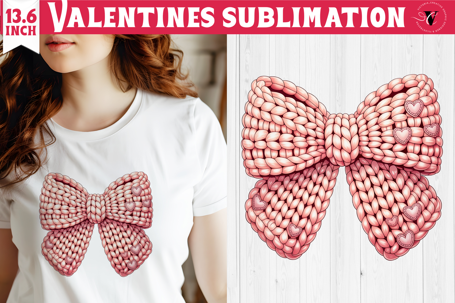 Crochet Valentines Day sublimation | Knitted Bow example image 1