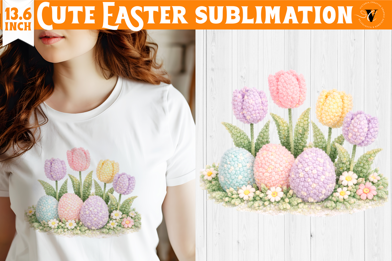 Designed in a cute Easter aesthetic, this style is perfect for spring-themed projects and seasonal products. The yarn texture adds depth and dimension, making the design stand out beautifully on both light and dark backgrounds.