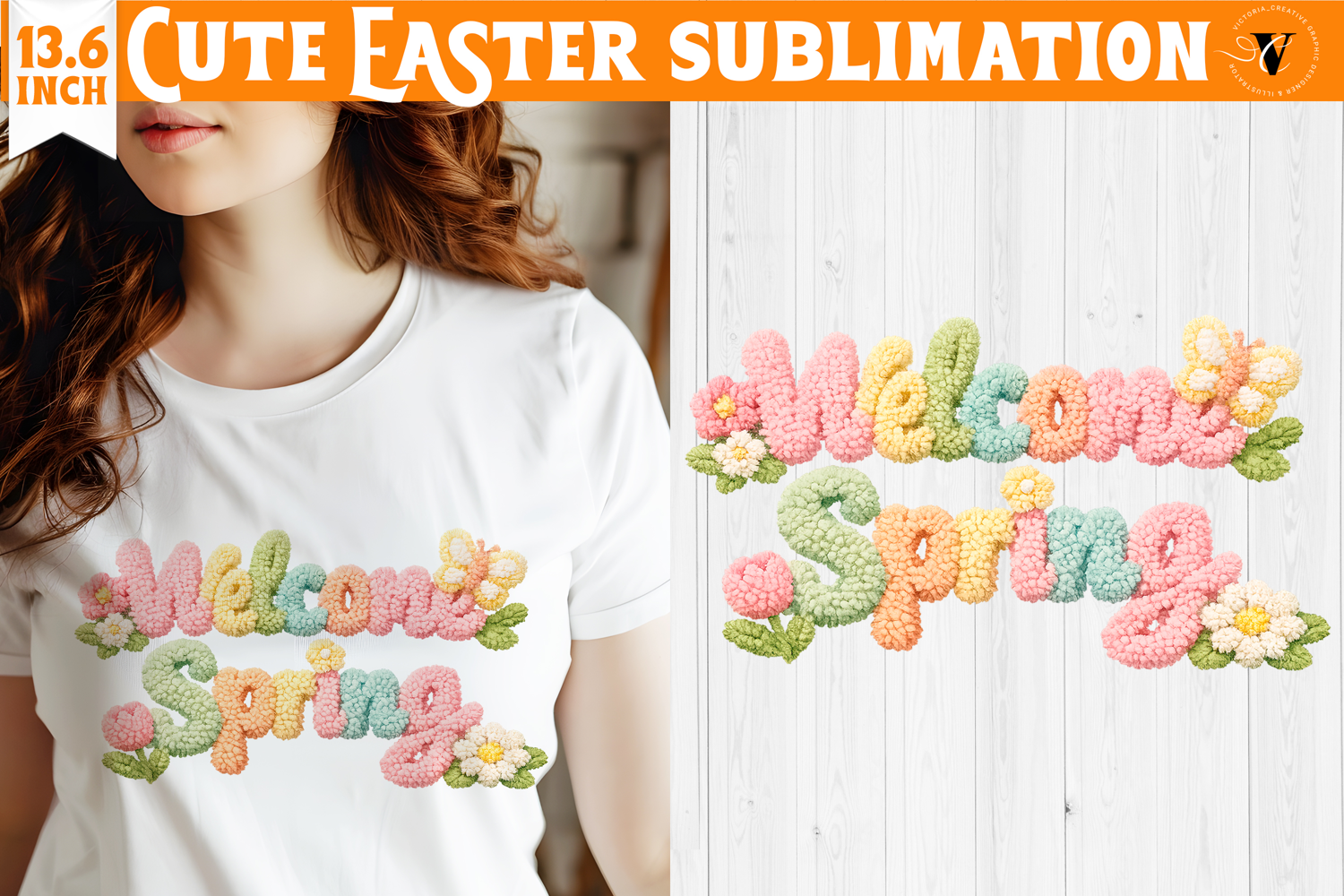 Designed in a cute Easter aesthetic, this style is perfect for spring-themed projects and seasonal products. The yarn texture adds depth and dimension, making the design stand out beautifully on both light and dark backgrounds.