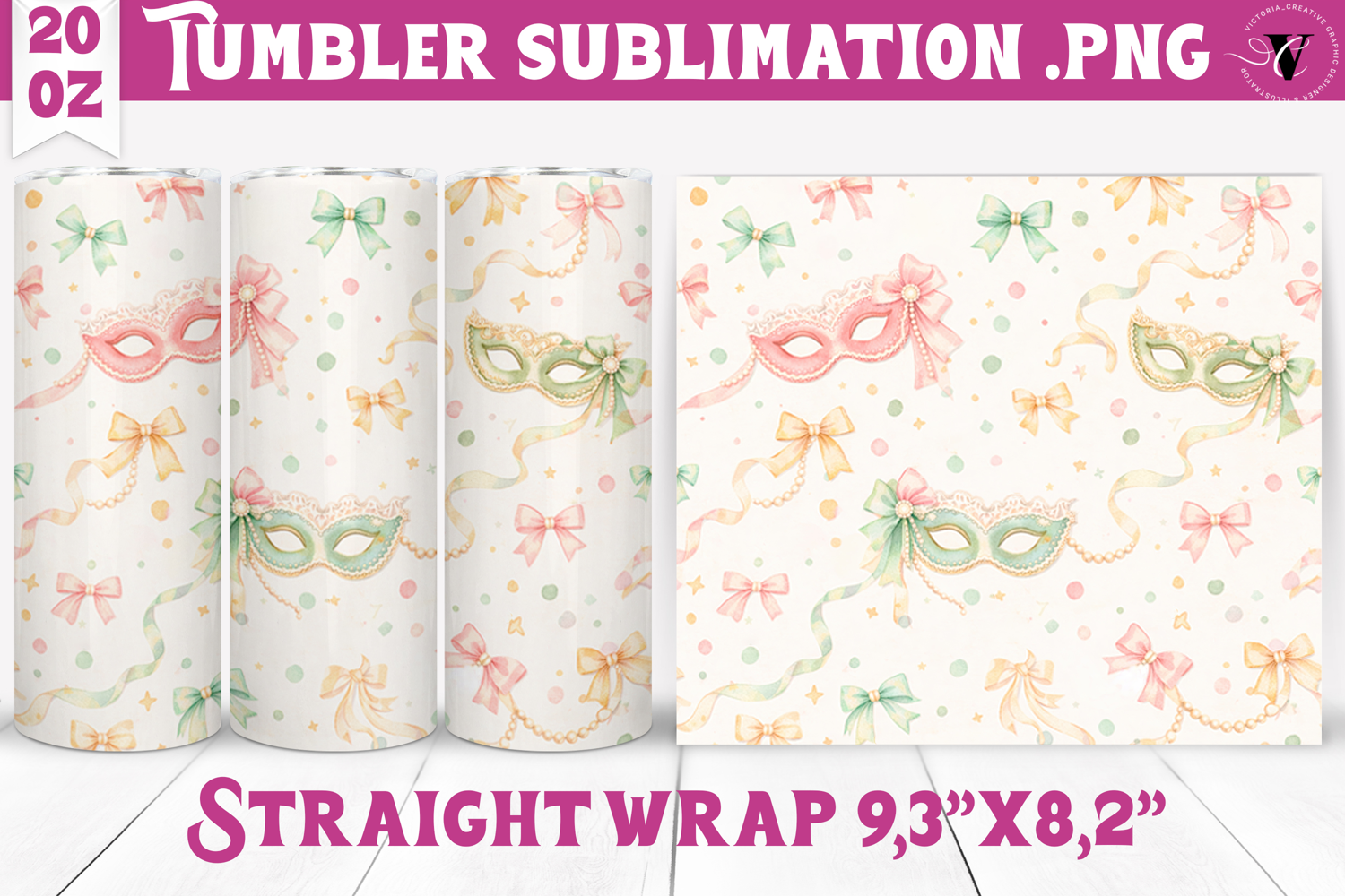 This Mardi Gras tumbler sublimation design is inspired by the vibrant spirit of Carnival, featuring rich festive colors, elegant masquerade masks, sparkling beads, flowing ribbons, florals, and celebratory details. The artwork captures the joyful, luxurious atmosphere of Mardi Gras, making it perfect for bold and eye-catching drinkware designs.