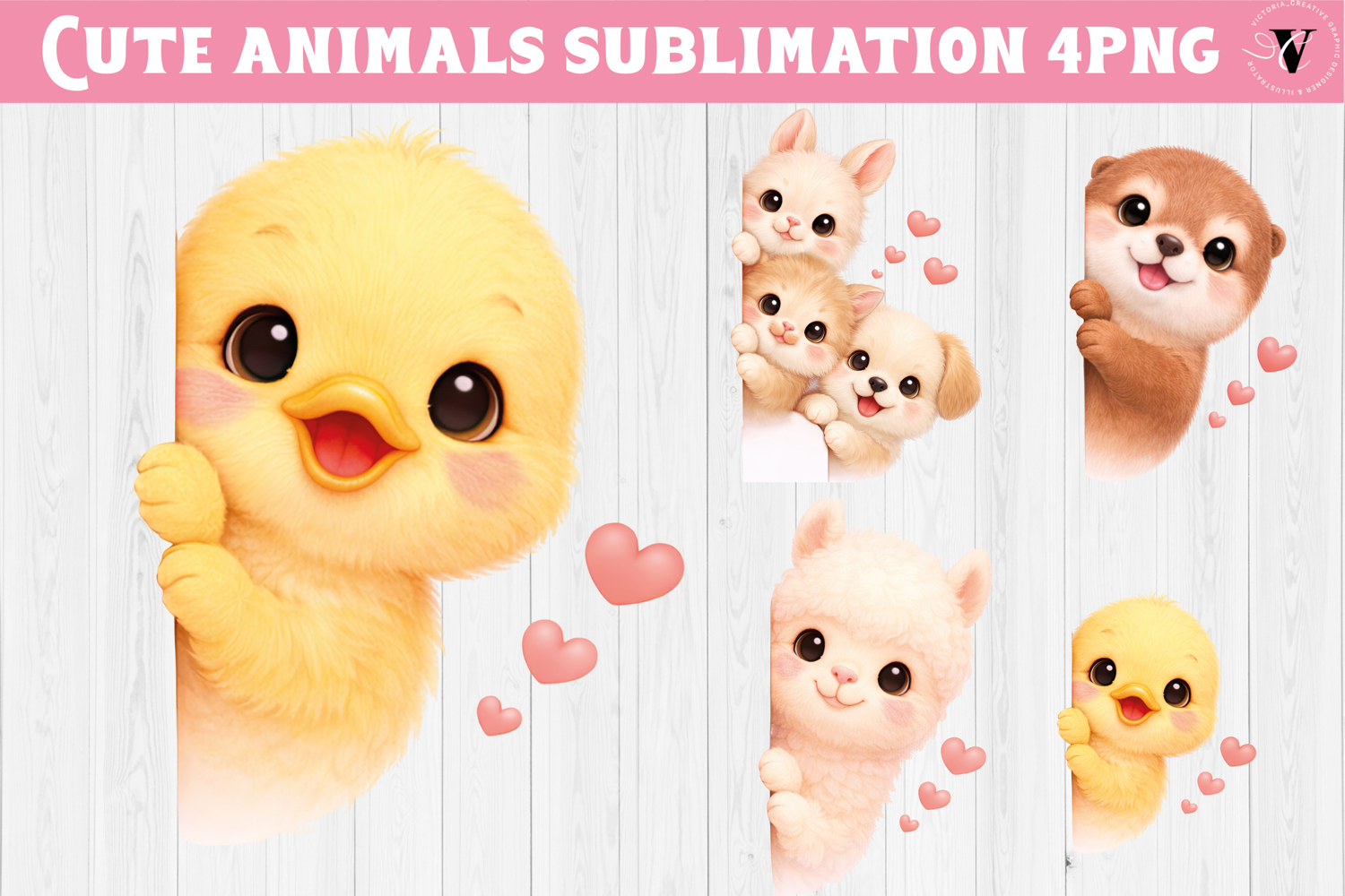 This Cute Animals Peeking Cliparts features an adorable collection of baby animals peeking from the side with sweet expressions and tiny hearts. Designed in a soft, kawaii style, these high-quality illustrations are perfect for children’s designs, nursery decor, stickers, apparel, sublimation projects, and digital products.