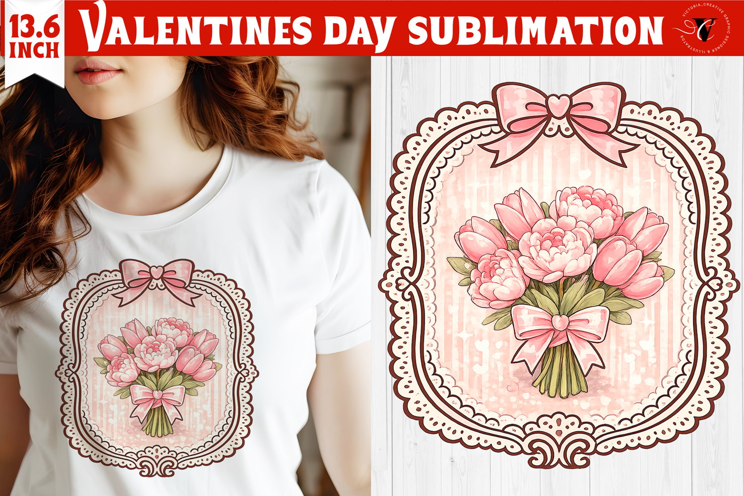 Valentine Shirt Design Romantic Sublimation Design Love Sublimation Png Love Themed Sublimation Coquette Valentines Sublimation Clipart Coquette Valentine Vintage Frame Clipart Valentine Coquette Style Png Coquette Pink Aesthetic Valentines Sublimation Tshirt Mug Pillow Tote Bag Bouquet Of Flowers And Bow