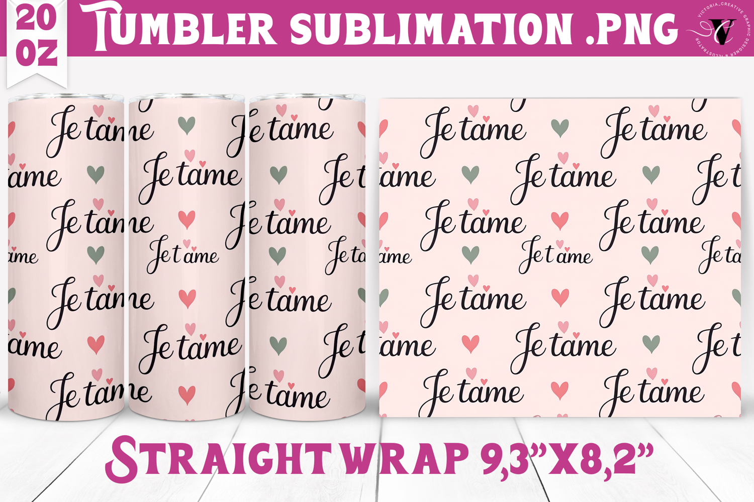 Valentines Tumbler | Je tame and Hearts sublimation